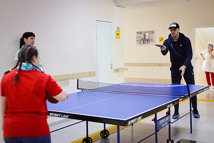 А затем состоялся небольшой турнир в настольный теннис между футболистами и воспитанниками центра.
