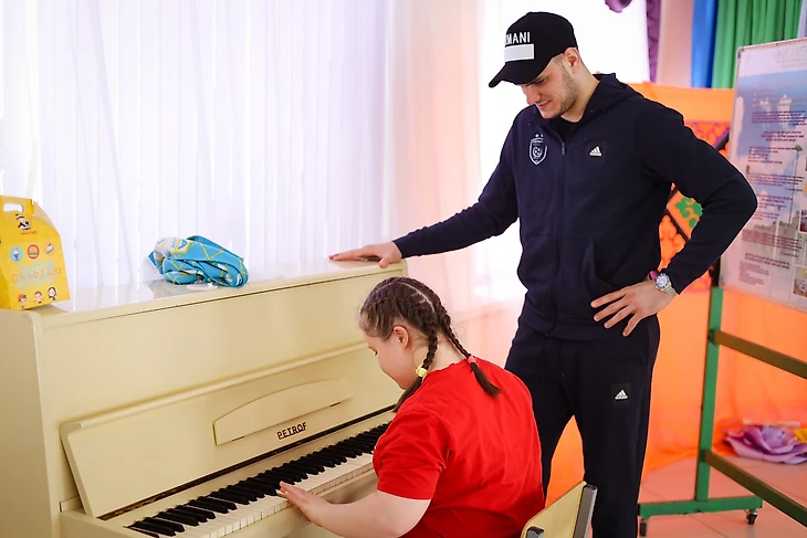 На акции, организованной совместно с центром, его дети представили игрокам столичного клуба различные выступления.