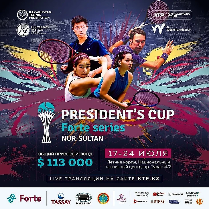 С 17 по 24 июля в столице в рамках «Кубка Президента» состоятся международные турниры серии ATP Challenger Tour и ITF Women's World Tennis Tour. Игры проходят на летних хардовых кортах Национального теннисного центра. Вход на игры свободный!