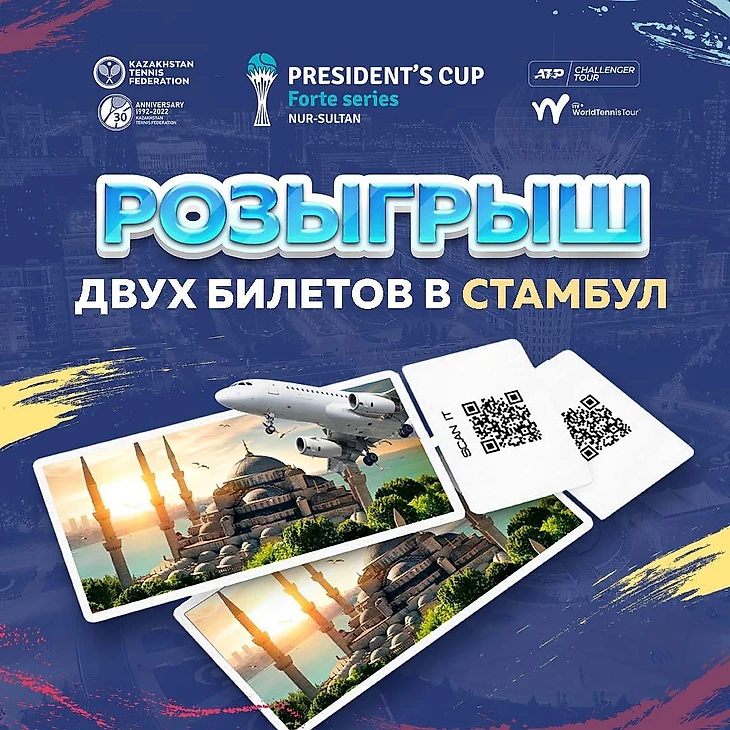 Дорогие друзья! Сегодня в столице Казахстана стартовал традиционный международный турнир President’s Cup 2022! Совместно с партнером «Turkish Airlines» федерация тенниса Казахстана решили разыграть для вас 2 авиабилета (туда-обратно) с вылетом из Нур-Султана в солнечный Стамбул.