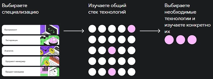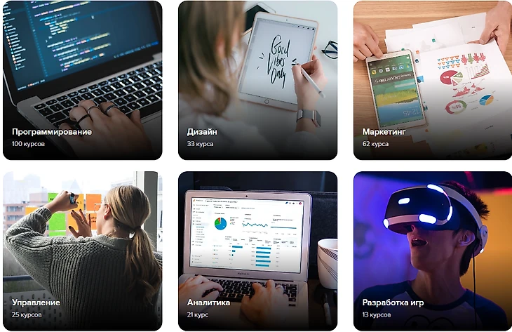На платформе представлено восемь наиболее востребованных направлений в IT, а также специальные подборки для школьников и отдельных компаний.