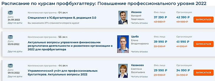 Тринадцать программ предназначены для повышения квалификации, пять из них посвящены работе с разными модулями 1С, остальные – рассматривают такие темы: