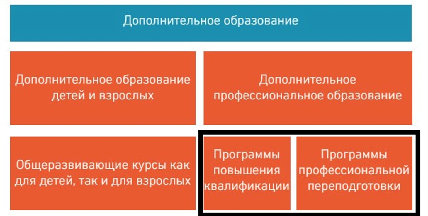Программы допобразования включены в учебные планы многих крупных институтов и университетов, а также сертифицированных организаций, которые занимаются повышением уровня квалификации слушателей для прохождения аттестации.