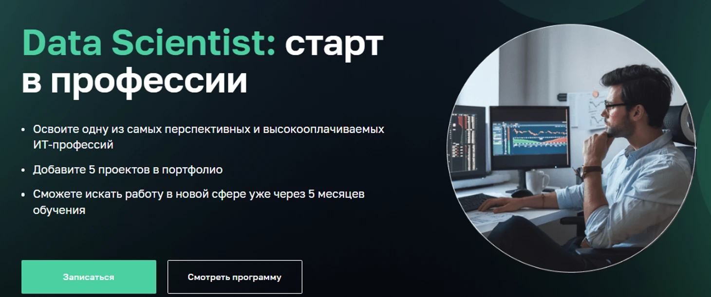 Есть еще 2 программы с меньшим погружением, которые являются частью расширенной: DataScientist, рассчитанная на 16 мес. учебы и D.S. старт в профессии – ее можно пройти за 10 месяцев.