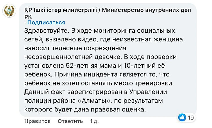 — Я на связи и с Генеральной прокуратурой, и с Комитетом по охране прав детей Министерства просвещения, которые отрабатывают ситуацию с комиссией по делам несовершеннолетних акимата города Астаны. О принятых мерах в отношении нарушенных прав девочки жду полной информации от вышеуказанных государственных органов.