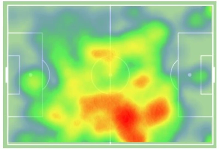 Открывание между линиями – еще один скилл Тигруджа. В первой части чемпионата можно было наблюдать такую картину, когда француз часто просил мяч между линиями в центре поля. Однако под конец сезона главный тренер «Каспия» Николай Николов немного перестроил игру, а Тигруджа стал чаще открываться на флангах, заполняя позиции крайних защитников.