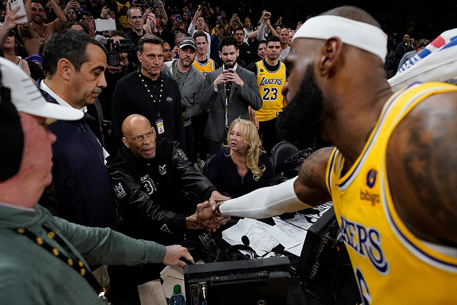 7 февраля. Одно из главных событий месяца – Леброн Джеймс побил «вечный» рекорд НБА по очкам, обогнав Карима Абдул-Джаббара. Рукопожатие двух легенд.
