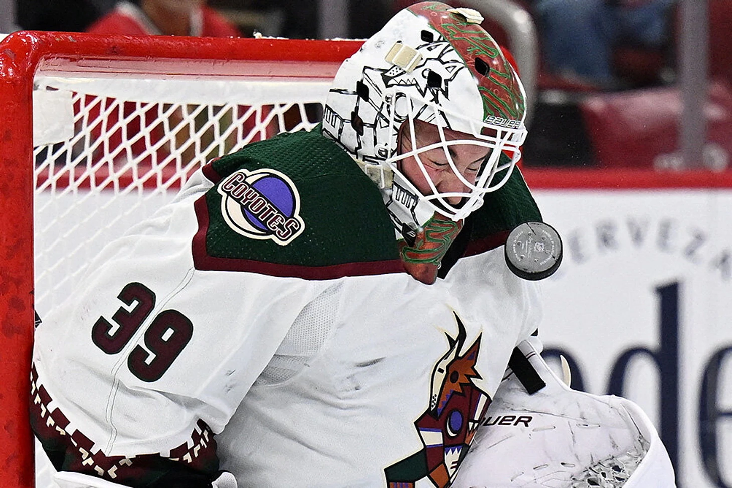 10 февраля. Коннор Ингрэм из «Аризоны» морщится, но делает сейв.