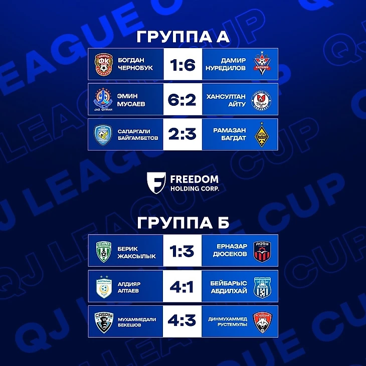 Матчтар нәтижелері келесідей болды: