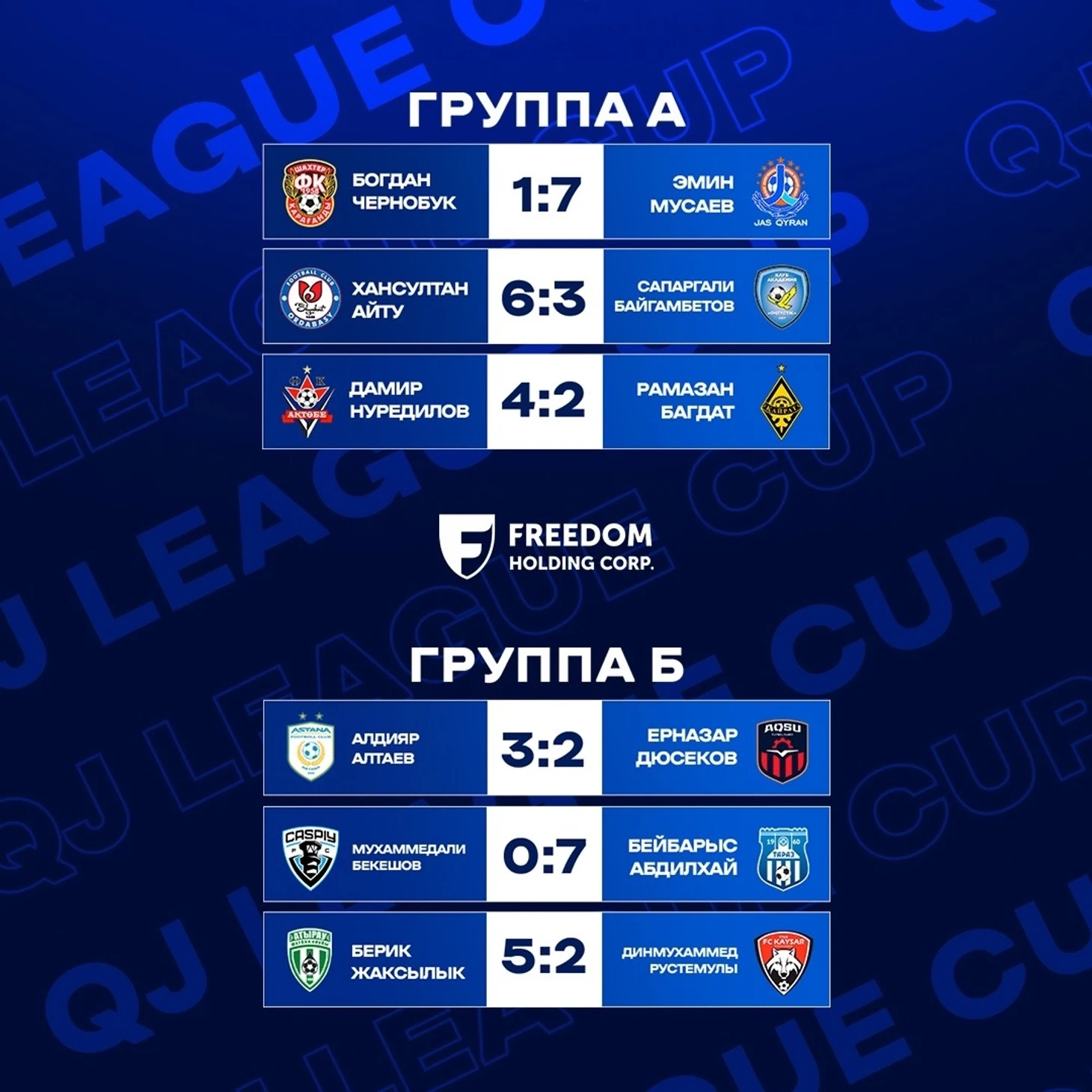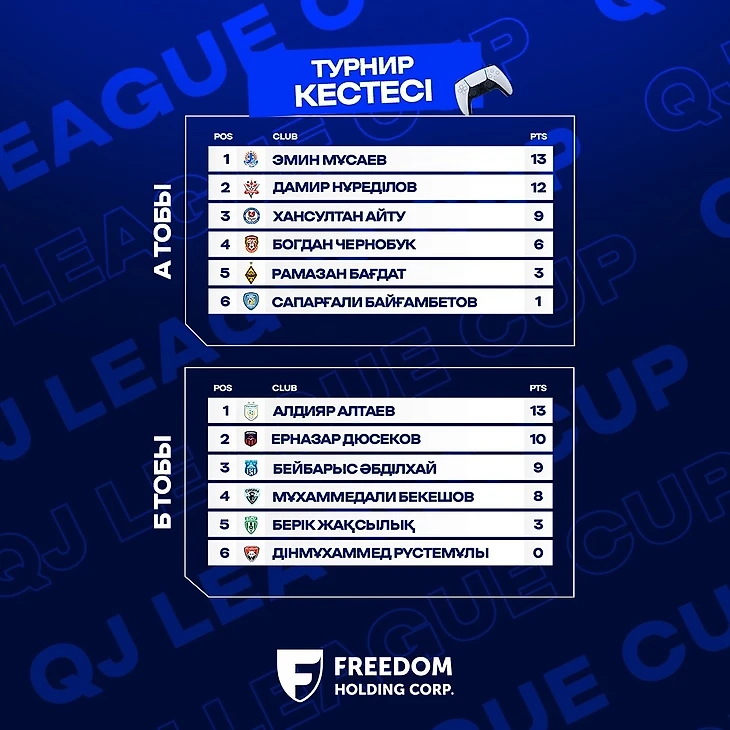 Айта кету керек, Freedom Holding Corp. компаниясы eFIFA Freedom QJ League Cup турнирін қаржыландыру, барлық қатысушылар мен ұйымдастырушыларға тұру, ұшу және тамақтану шығындарын өз мойнына алған болатын.