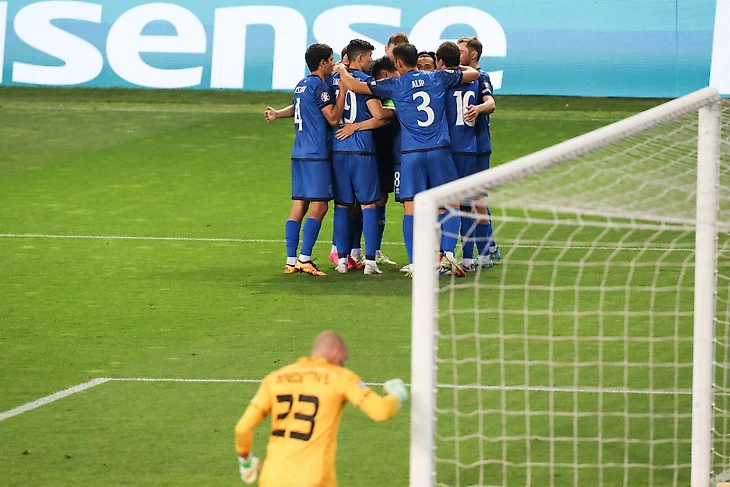 Через пару минут Казахстан нанес первый удар в створ ворот. К мячу приложился Самородов – но удар получился не сильным, и голкипер хозяев Элиа Бенедеттини легко с ним справился.