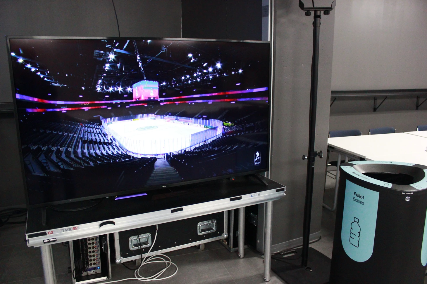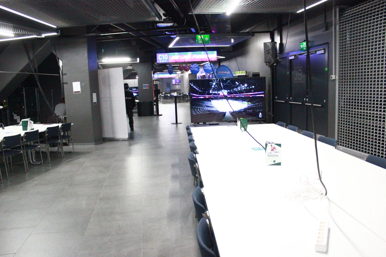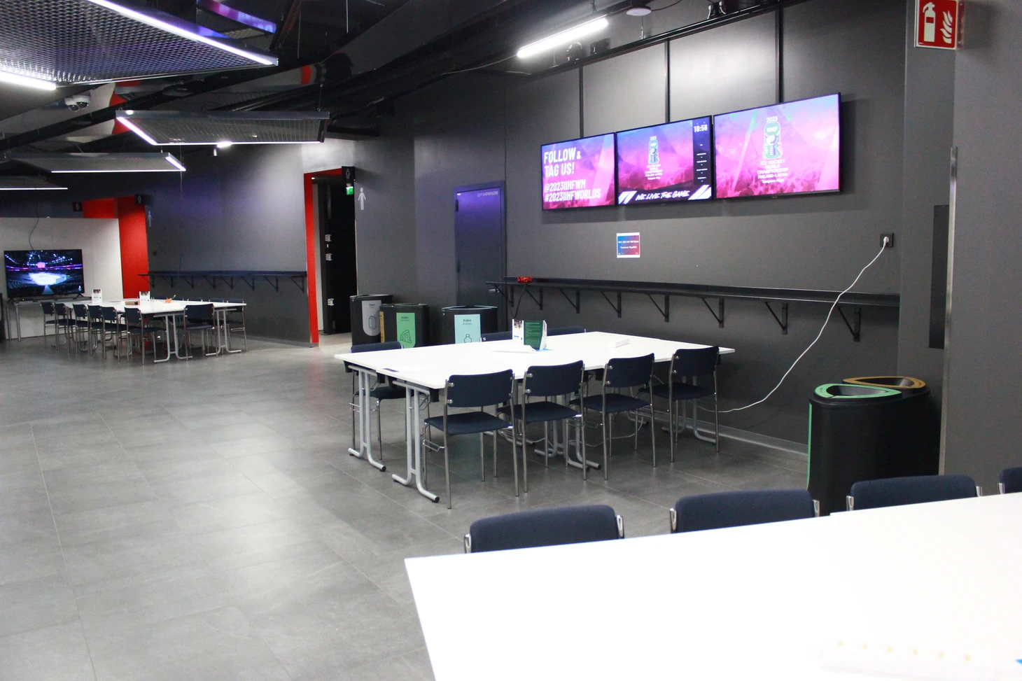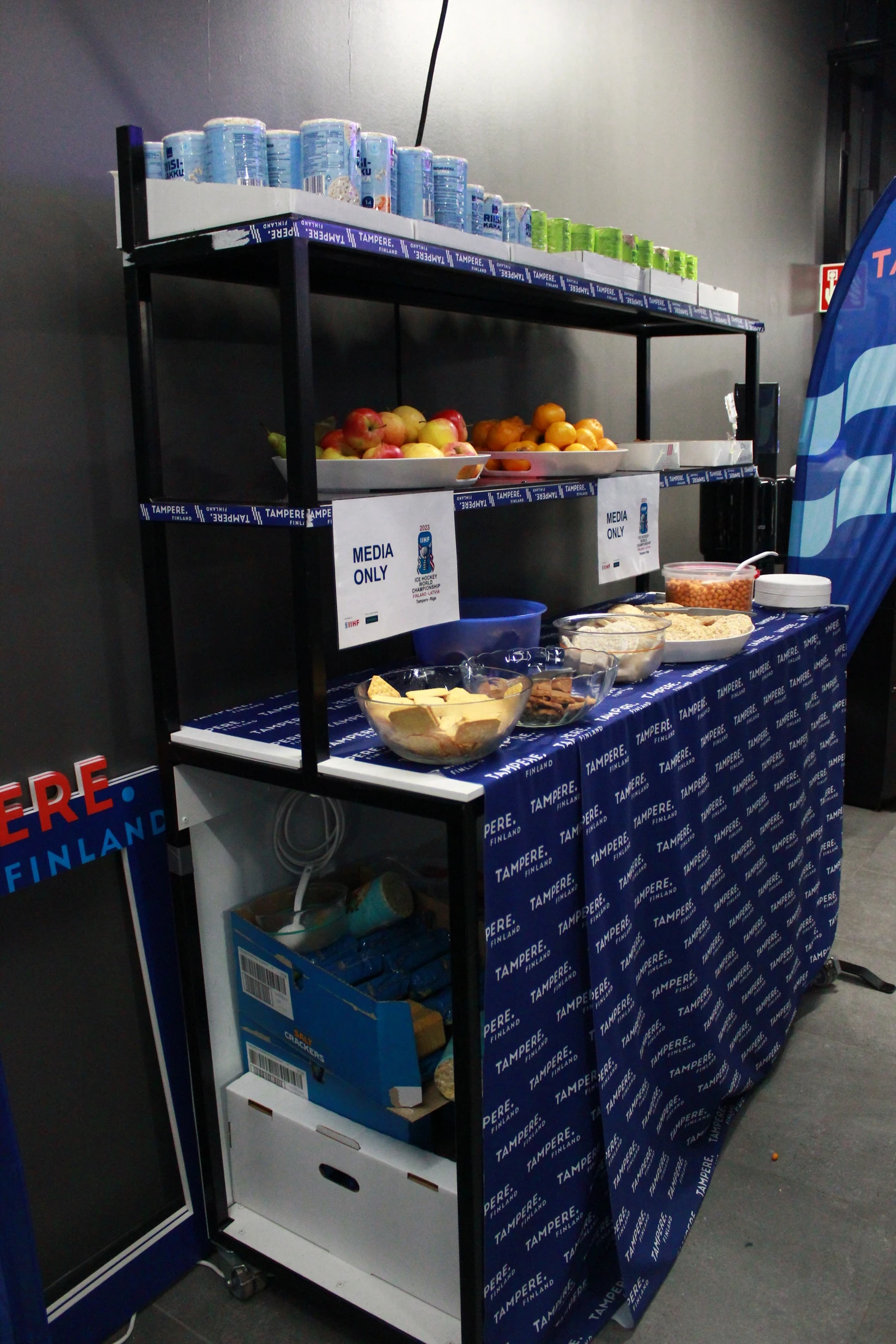 Сам медиацентр огромный, со множеством столов и удобных мягких стульев для журналистов и фотокорреспондентов. Практически везде установлены огромные телевизионные экраны, на которых велась трансляция матчей. К услугам журналистов кофе-машины, чай, выпечка, фрукты, сладости, питьевая вода, салфетки – только сосредотачивайся на хоккее и твори. Внимательные волонтеры вовремя наполнят коробки с едой. Журналисты из разных стран писали свои заметки и репортажи в комфортных условиях, а выход в ложу для прессы сразу же в шаговой доступности. В ложе оборудованы столы для ноутбуков, розетки и беспроводной интернет работал без сбоев. Однозначно, в плане организации медиа-центра финны в Тампере задали высокую планку.