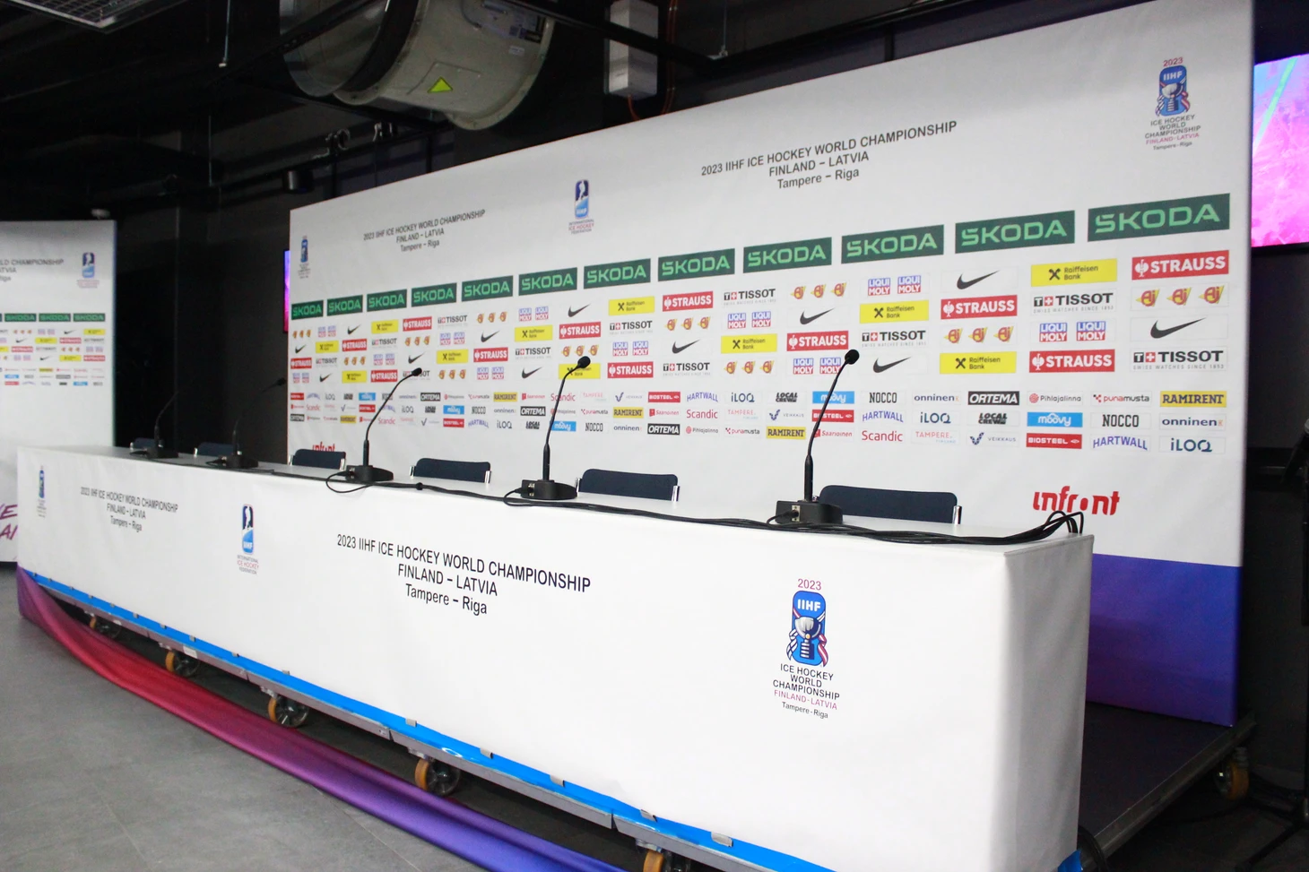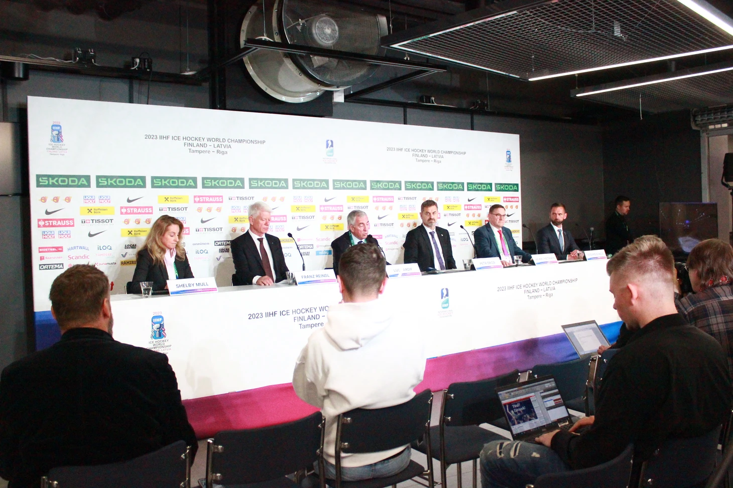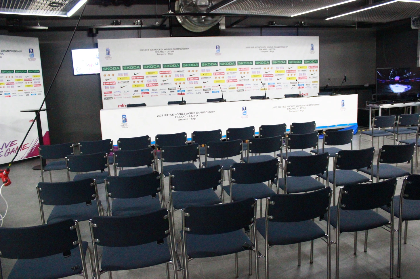В день закрытия ЧМ состоялась пресс-конференция с участием руководства ИИХФ и оргкомитета турнира и представителя чешской стороны. Напомним, что ЧМ-2024 примут Прага и Острава. За два часа до начала пресс-конференции освещение и звук наладила девушка из технической службы «Nokia Arena»: оперативно, со знанием своего дела. Помимо журналистов в медиа-центре было немало скаутов. Например, легендарный четырехкратный обладатель Кубка Стэнли, олимпийский чемпион, трехкратный чемпион мира, один из самых результативных защитников в истории Никлас Лидстрём, ныне работающий скаутом «Детройт Ред Уингз», спокойно общался с журналистами, а легендарный комментатор TSN Горд Миллер тоже был замечен в медиа-центре в день полуфиналов.