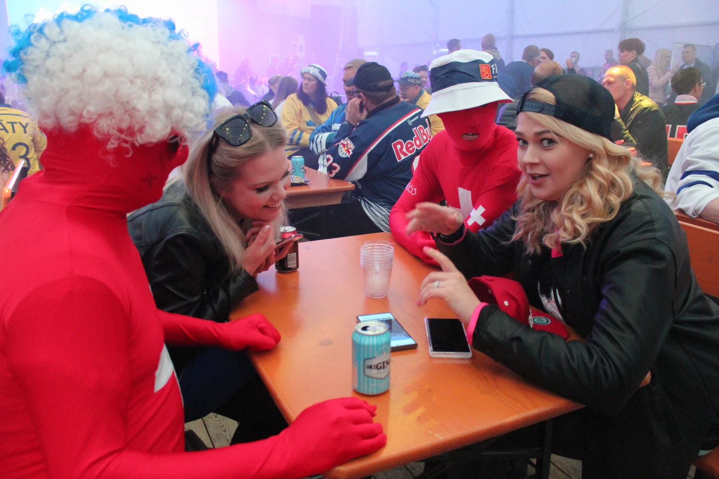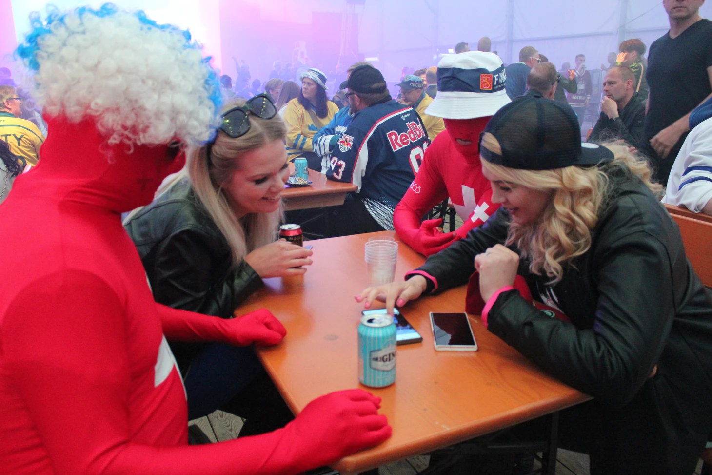 После матча в фан-зоне фанаты танцевали под известные хиты, пили пиво, веселились и общались. Даже обычно суровые секьюрити улыбались при виде веселых и «разогретых» фанатов и сами едва не пускались в пляс. Как и год назад удалось увидеться с замечательной супружеской финской парой Ари-Пекка и Хелли-Мария. Снэпбэки с ретрологотипом «Торпедо», заказанные специально в Алматы, привели их в восторг. Ари-Пекка и Хелли-Мария – фанаты местного «Ильвеса» и тоже преподнесли шикарную клубную атрибутику казахскому журналисту из Усть-Каменогорска. Кстати, Хелли-Мария с супругом ждут прибавления в семье. «Ваш ребенок родится с шайбой и клюшкой», - пошутил я.