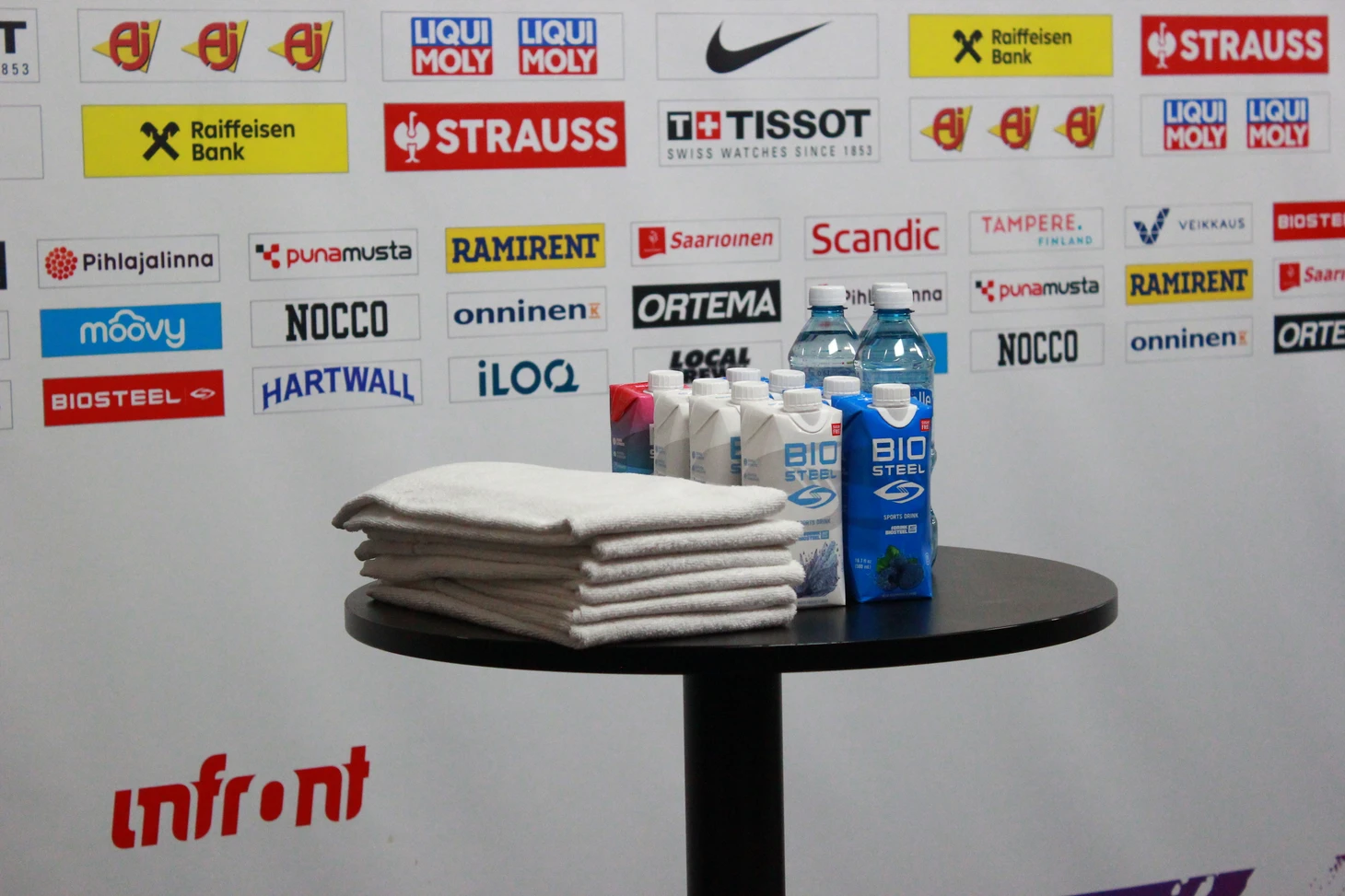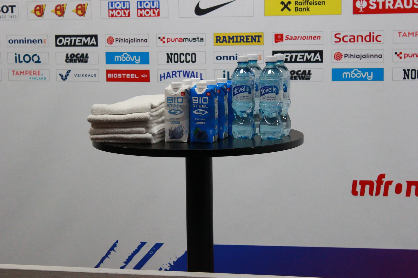 Год назад мне посчастливилось побывать в Тампере после группового этапа и тогда новая «Nokia Arena» произвела впечатление своими размерами и невероятным уютом. Казалось, что это высший уровень организации, но нынче финны сделали еще круче. Например, в микс-зоне, где после матчей журналисты записывают интервью с хоккеистами и главными тренерами финны установили специальные стойки с полотенцами и бутылированной водой, а также спортивные добавки для восстановления организма. Все условия для комфортного общения с прессой – вроде мелочь, а так приятно.