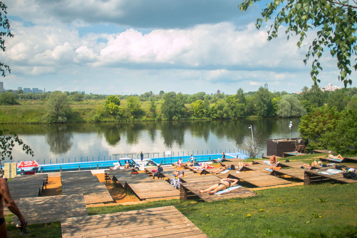 В парке «Сокольники» есть бесплатный пруд с песчаным пляжем и платные бассейны. В пруду запрещено купаться, но можно комфортно позагорать.