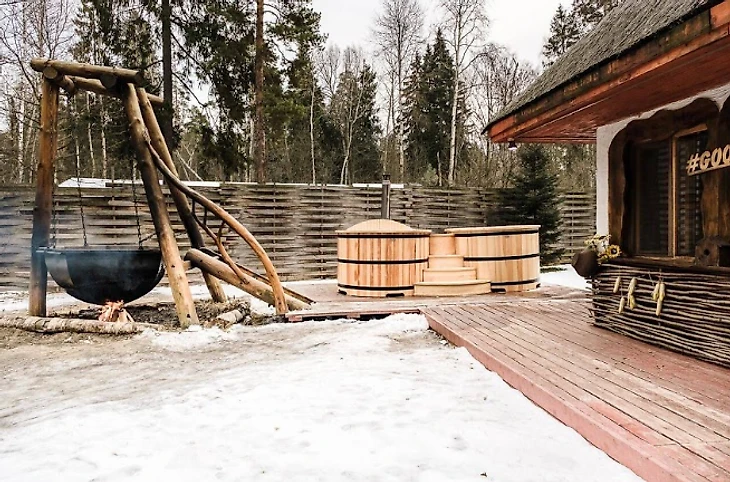 Банный курорт предлагает гостям оценить русскую, финскую и турецкую баню. Здесь есть чан над огнем, которым можно воспользоваться после парных процедур. В комплексе расположено несколько купелей с горячей и холодной водой. Они находятся на свежем воздухе с видом на природу.
