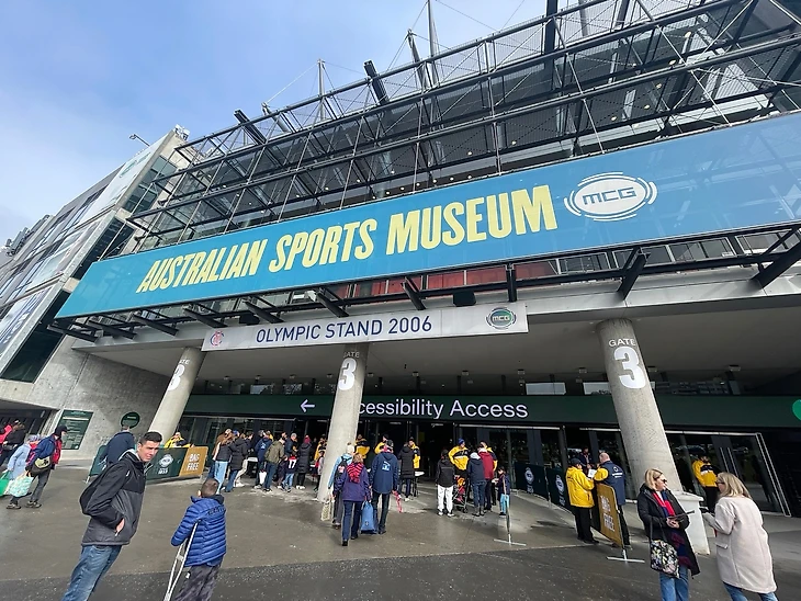 Для тех, кто уже читал наши посты про матчи женского ЧМ и местной ФНЛ, поясняем: речь о принципиально другом виде спорта. С овальным полем, грушевидным мячом и восемнадцатью полевыми в каждой команде. Подробнее о походе на 100-тысячный «Мельбурн Крикет Граунд» рассказываем в отдельном посте, а здесь о конкретном уголке этого стадиона – Музее австралийского спорта.