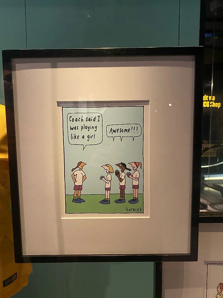 Представлен в музее и женский чемпионат мира – ему посвящена отдельная временная выставка. Марину покорило вот это изображение с диалогом: