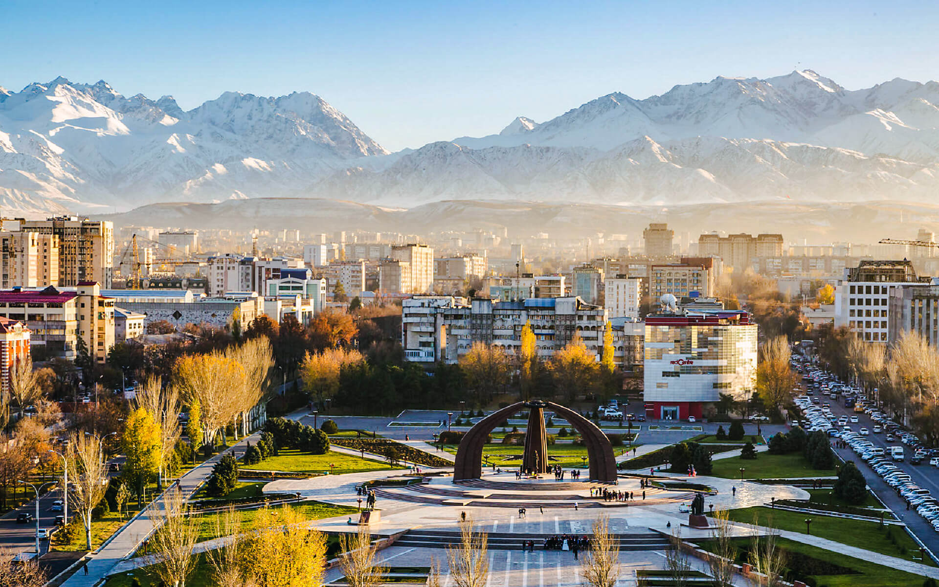 В стране не очень много крупных городов, но и здесь есть места для сити-туризма. Отдельного внимания заслуживает столица страны Бишкек. Город был основан в первой четверти XIX века и носил разные названия. Современность в столице сочетается с историей. В столице много зеленых парков, площадей и бульваров. Действует семь театров, более десятка музеев. Особого внимания заслуживает центральная площадь Ала-Тоо, башня Бурана, Мемориальный комплекс «Ата-Бейит» в память о жертвах репрессий 1930-х годов.