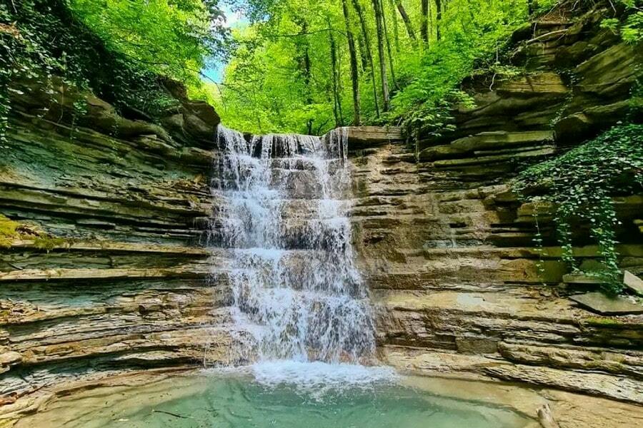 Самая дальняя точка нашего маршрута. На дорогу уйдет несколько часов, но длительная поездка стоит той красоты, которая вас ждет в Гуамском ущелье. Оно находится в долине реки Курджипс. Воздух в ущелье прохладный и свежий, дышится очень легко.