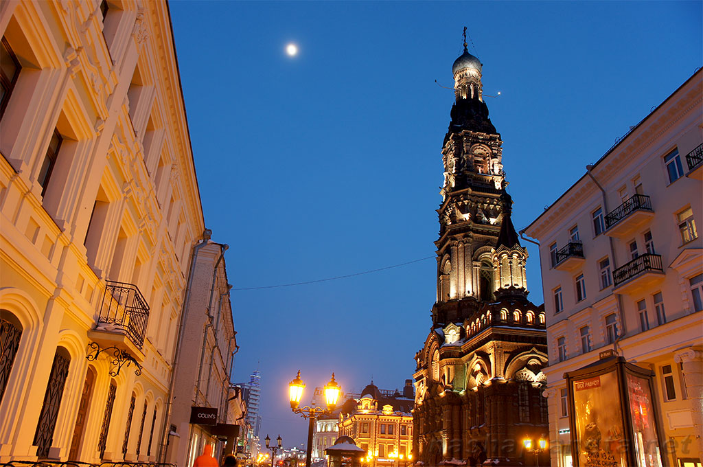 Колокольня видна из разных частей города, а на улице Баумана она находится в самом ее начале. Сооружение самое высокое в центре Казани. Строилась она гораздо позже самого собора по инициативе купца Ивана Кривоносова и в основном на его пожертвования по проекту архитектора Михаила Михайлова. Возведение завершилось в конце XIX столетия. На колокольне расположены четырнадцать колоколов, но она выполняла не только свою прямую функцию. На первом этаже было помещение, где проходили заседания приверженцев старообрядческой веры. Известно, что очень много купцов были выходцами из старообрядцев. На втором этаже колокольни был небольшой храм.