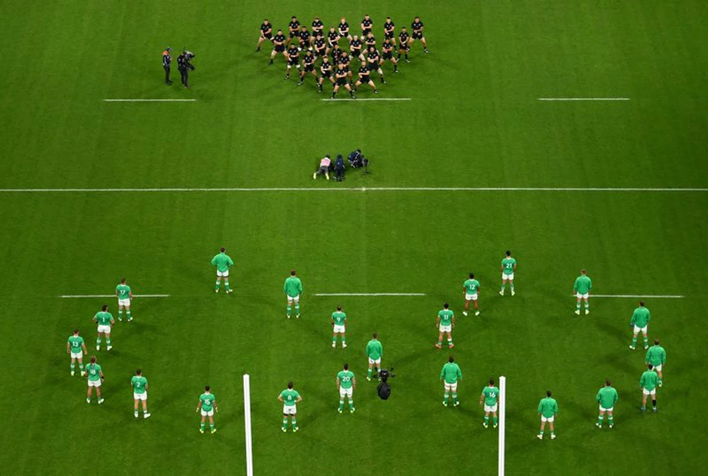 Ирландцы, которые выиграли Кубок шести наций в этом году и намеревались с Джонни Секстоном и Банди Аки сломать не поддающийся им до сих пор барьер четвертьфинала КМ, выступали в этот раз, как говорится, на уровне сложности «very hard» или даже «impossible» (впрочем, и для новозеландцев встреча проходила не на уровне «новичка»). Джонни Секстон завершал карьеру в сборной, и ирландцы хотели продемонстрировать «last dance» в поддержку легенды «Ленстера», которая могла и вообще остаться без Кубка мира. Перед хакой, которой руководил Аарон Смит, они выстроились в восьмёрку, которая ещё и напоминала знак бесконечности. Что же они этим хотели сказать? А речь шла об Энтони Фоли, великом игроке и тренере «Манстера», который скончался в Париже 7 лет назад. Ему таким образом отдавали дань памяти.