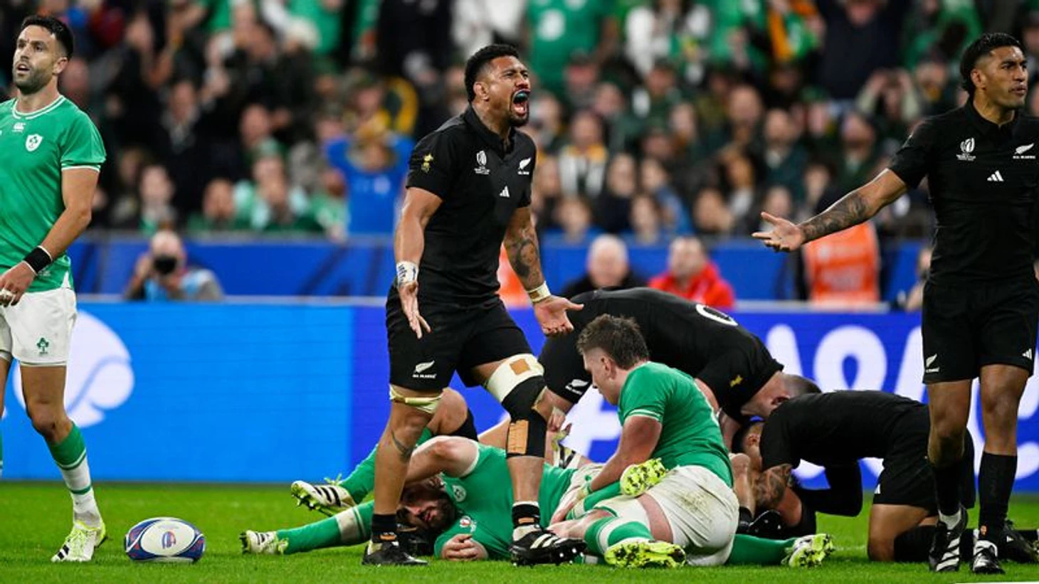 Впрочем, новозеландцы сделали свои выводы: капитан Сэм Кейн сказал, что команда отгородилась от внешних факторов и доверилась тренерскому штабу, благодаря чему теперь снова сразится за титул лучших в мире. После поражения от Франции новозеландцы включили свою былую прыть и раздавили трёх своих конкурентов. Первой под каток попала Намибия, которую нещадно разорвали со счётом 71:3: восемь реализаций из 11 провёл успешно Дэмьен Маккензи, который занёс две попытки (столько же заносов есть у Кэма Ройгарда в той встрече). Следующей жертвой пала Италия, которая к 3-му туру теоретически могла и выйти в плей-офф (вот получился бы театр абсурда): новозеландцы решили судьбу не испытывать и задавили «адзурри» в первом тайме, позволив им во втором занести две попытки престижа. Трижды попытками отметился Аарон Смит, по две занесли Уилл Джордан, Арди Савеа и Дэн Коулз: всего на счету новозеландцев было 15 попыток, 9 реализаций от Ричи Моунга (одну он запорол) и 4 от Дэмьена Маккензи. Как итог, счёт 96:17. Контрольный выстрел новозеландцы сделали в Уругвай, победив 73:0. Хет-трик оформил Лестер Фаинга’ануку, дважды попытками отметились Дэмьен Маккензи и Уилл Джордан. Из реализаций отметился пятью попаданиями Ричи Моунга, ещё по два у Дэмьена Маккензи и Бьюдена Баррета. Ну а Сэм Уилток сыграл 150-ю игру за сборную и установил рекорд по числу матчей на Кубках мира, проведя 23 игры (он обошёл Джейсона Леонарда и Ричи Маккоу). Новозеландцы заняли 2-е место в группе из-за проигрыша французам и попали в плей-офф на Ирландию, выигравшую свою группу, а не на ЮАР. А ведь если бы из них кто-нибудь победил в своём матче, вывеска для этого финала в итоге стала бы вывеской четвертьфинала… Англичанин Уэйн Барнс обслуживал встречу, которая действительно была увлекательной.