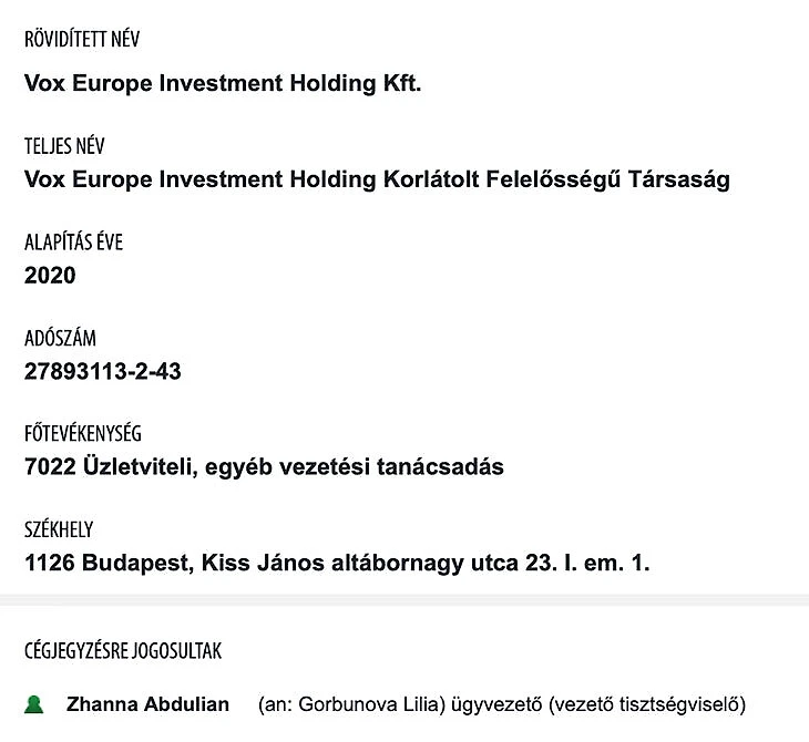 Официально холдинг Vox Europe Investment к нашей стране никакого отношения не имеет. Он занимается инвестициями и зарегистрирован в Венгрии. Генеральный директор – Жанна Абдулян, и вот это уже отлично знакомый нашей спортивной тусовке человек.