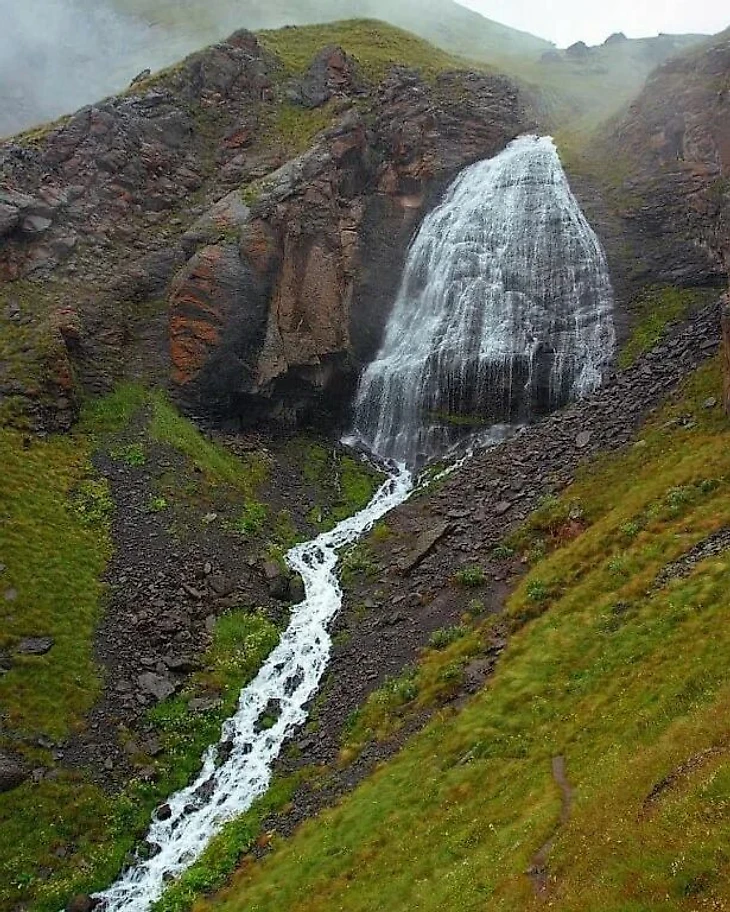 Рядом с обсерваторией находится еще один красивый водопад – Терскол. Природная достопримечательность необычайной красоты состоит из группы базальтовых столбов, по которым вода падает с высоты до 20 метров. Посещая водопады Эльбруса не стоит близко подходить к ним и тем более вставать под струю воды. Водный поток может нести в себе камни и при падении с высоты они могут нанести вред человеку.