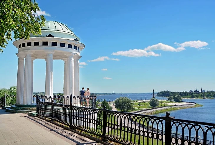Еще одной достопримечательностью города является Стрелка. В месте, где происходит слияние Волги и Которосли, когда-то обосновались финно-угры. С мая по октябрь туристы приходят полюбоваться поющими фонтанами и живописными картинами. На главной набережной расположены дома, которые являются достопримечательностями города, в которых жили купцы, и храмы Ильи Пророка, Ильинско-Тихоновский, Успенский. Местные любят проводить свободное время здесь, чтобы покататься на велосипедах, роликах и других СПМ.