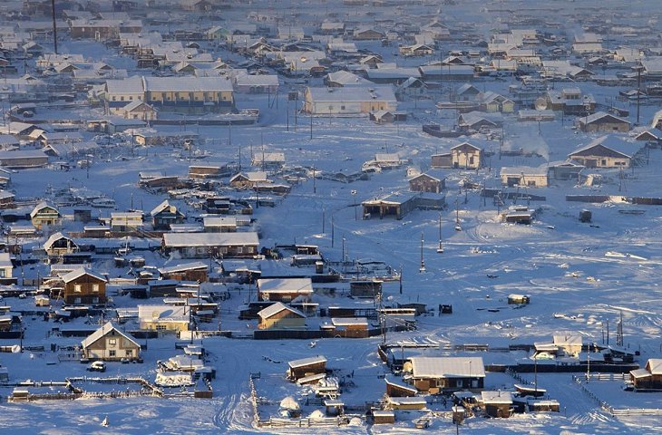На востоке Республики Якутия находится село Оймякон. Это один из «полюсов холода» планеты — самых суровых мест, где проживают люди. В зимнее время температура воздуха нередко опускается до отметки в минус 50-60 °C. Официально зафиксирован абсолютный минимум температуры в минус 64,3 °C, но местные рассказывают, что зимой 1938 года температура опустилась до -77,8 градусов.