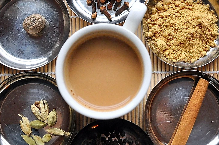 Буду кушать и запивать чаем. Да не простым, а золотым. Одним из традиционных чайных напитков в Индии является масала. Напиток состоит из чёрного чая, молока, а также корицы, имбиря и специй. Очень и очень хорош для горла в холодную погоду. Рекомендую. В общем и целом, мы кушали пакору, пили индийский чай и смотрели крикет.