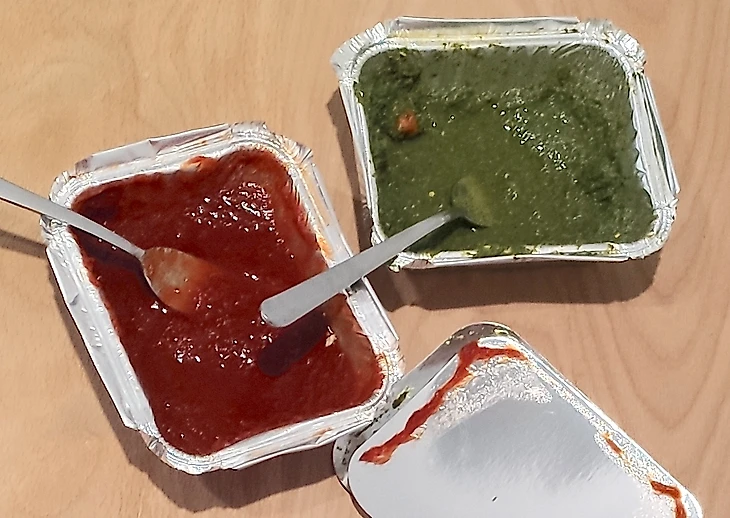 Распространён чатни красного цвета, который делается на основе томатов и перца чили с небольшим добавлением специй, а также зелёный чатни - на основе различной зелени и перца. Когда я обильно макнул свой кусочек пакоры в зелёный соус, один из индусов закричал мне «ХВАТИТ!». Надо сказать, что он целых два раза за день так кричал: во второй раз игрок соперников австралиец Трэвис Хэд выбивал неприличную для финала серию очков (ранов). Ох, спасибо тебе, дорогой товарищ, спас мне пару сотню рецепторов рта от мгновенной смерти в этой огненном пламени специй. Пожалуй, буду кушать с красным соусом.