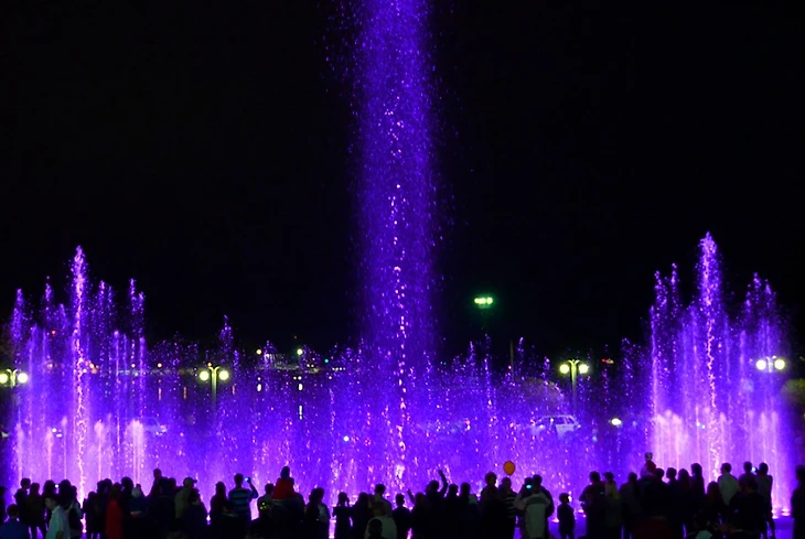 С наступлением сумерек фонтан меняется. Изменения происходят благодаря световому и музыкальному сопровождению. Всего установлено 200 насадок, из которых вода вздымается вверх до 18 метров. Один музыкальный сеанс длится 20 минут, после чего начинается новый. В качестве музыкального сопровождения включают классическую музыку, ретро-композиции, песни современных поп-исполнителей.