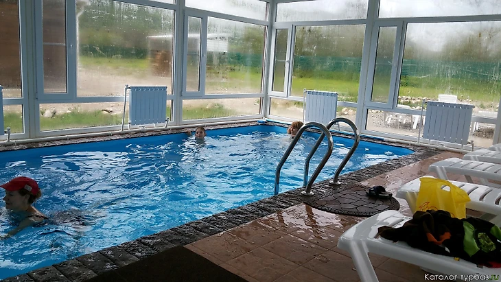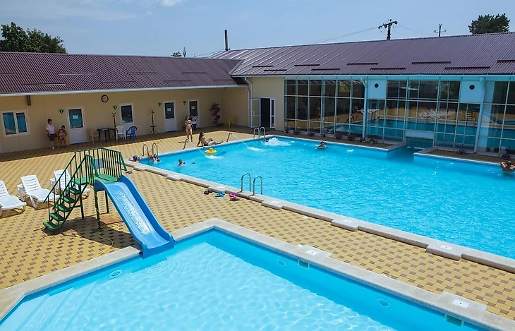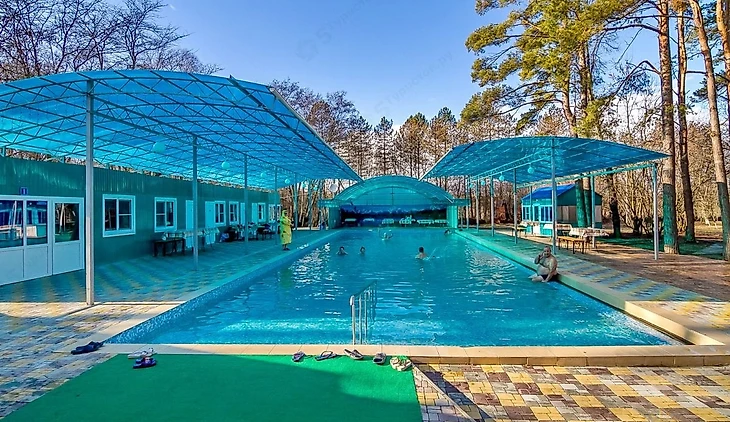 Территория базы отдыха большая, ухоженная и благоустроенная. На ней находится три бассейна. В самом большом площадью более трехсот квадратных метров варьируется температурный режим от летнего до зимнего. Взрослый бассейн площадью пятьдесят квадратных метров оборудован гидропушками, гидрофорсунками, лейками, душами, гейзерами. На таком же по площади детском бассейне есть горки, где могут развлекаться самые маленькие отдыхающие. Туристам предлагают пройти оздоровительные процедуры, которые включают различные виды массажа от тонизирующего до лимфодренажного и антицеллюлитного, а также пилинг, обертывание и другие процедуры. Отдельного внимания заслуживает «Тропа здоровья», это своеобразная дорожка с разным покрытием, которое массирует стопы ног, что полезно как для взрослых, так и для детей.