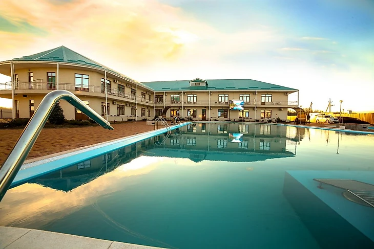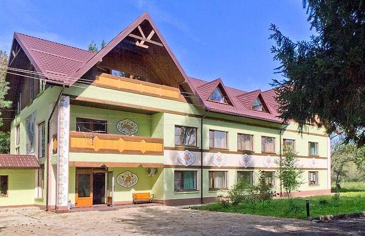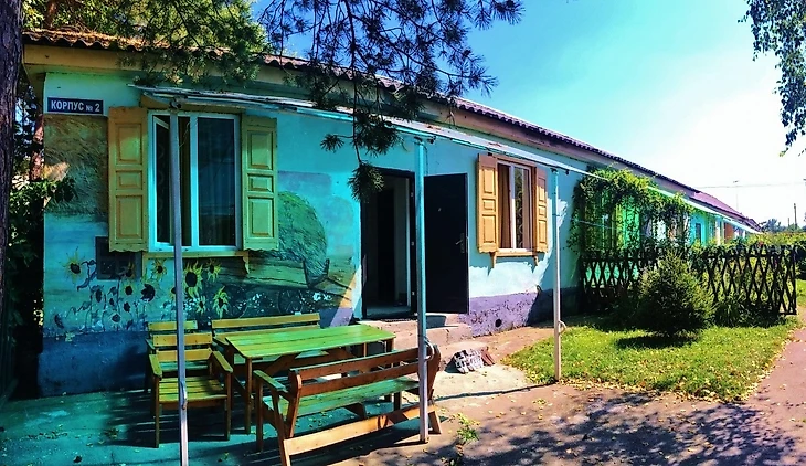 Еще одна база отдыха, которая находится в поселке. Гостям предлагают проживание в номерах категории «эконом», где есть две односпальные кровати, санузел и душ исключительно общего пользования. Другой вариант номера категории «стандарт», тут комнаты с двуспальной или двумя односпальными кроватями, есть санузел с душем. Питаться есть возможность на общей кухне, оборудованной всей необходимой бытовой техникой для самостоятельного приготовления еды и посудой. В мангальной зоне с беседками можно пожарить мясо на углях. Если нет желания готовить самостоятельно, то в поселке работает кафе.