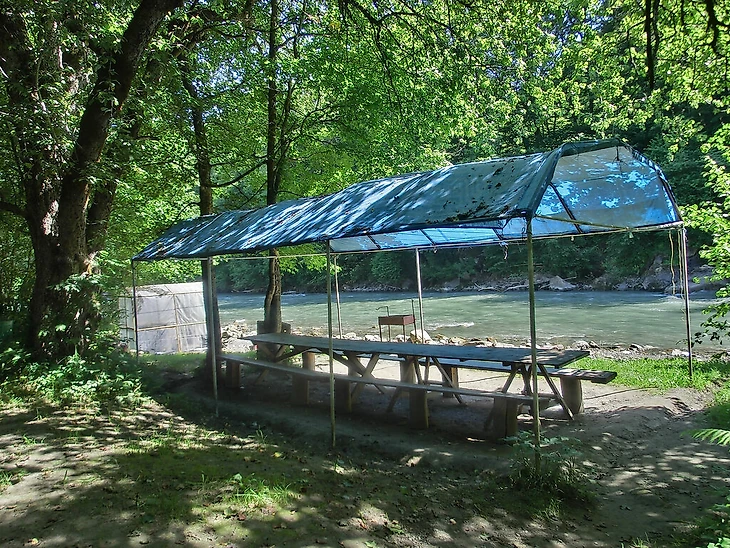 Гостевой дом отличается отличным расположением, неподалеку находятся многочисленные термальные источники, вокруг потрясающая природа — лес, заповедная зона с дольменами, горная река. Комплекс небольшой и компактный. Проживание предлагается в восьми номерах, семь категории «комфорт» и один бюджетный. Можно приехать вдвоем, компанией или семьей из четырех человек, всем найдется место. На территории гостевого дома есть крытый бассейн, который работает круглый год с подогревом и соленой водой, а также русская баня.