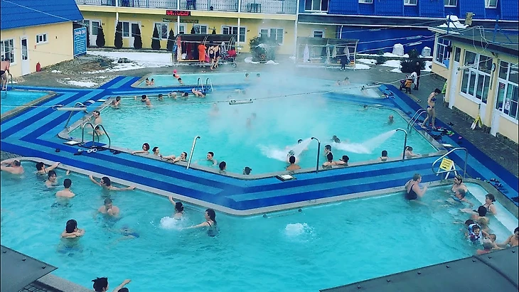 В термальном парке находится сразу несколько бассейнов, где температура воды поддерживается на уровне плюс 37-39 градусов по Цельсию. Проживание отдыхающих возможно в номерах различных категорий от «стандарта» до «люкса», а также на виллах. Площадь номеров от 15 квадратных метров, каждый оборудован всем необходимым, в том числе, ванной комнатой. На улице есть подогреваемые беседки. Питаться можно в кафе на территории, где готовят очень вкусно и по вполне демократичным ценам, завтраки включены в проживание. На территории парка есть зоны барбекю, термальная баня-бочка на дровах. Отдыхающие могут получить такую спа-процедуру, как фишпилинг — педикюр и маникюр с помощью рыбок Гарра Руфа. В парке возможно дневное пребывание.