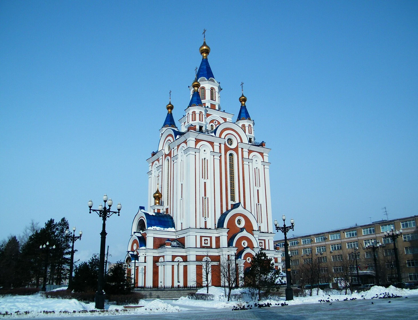 На Соборной площади Хабаровска напротив набережной Амура находится Градо-Хабаровский собор успения Божией Матери. Он отличается интересной архитектурой и визуально устремляется вверх.