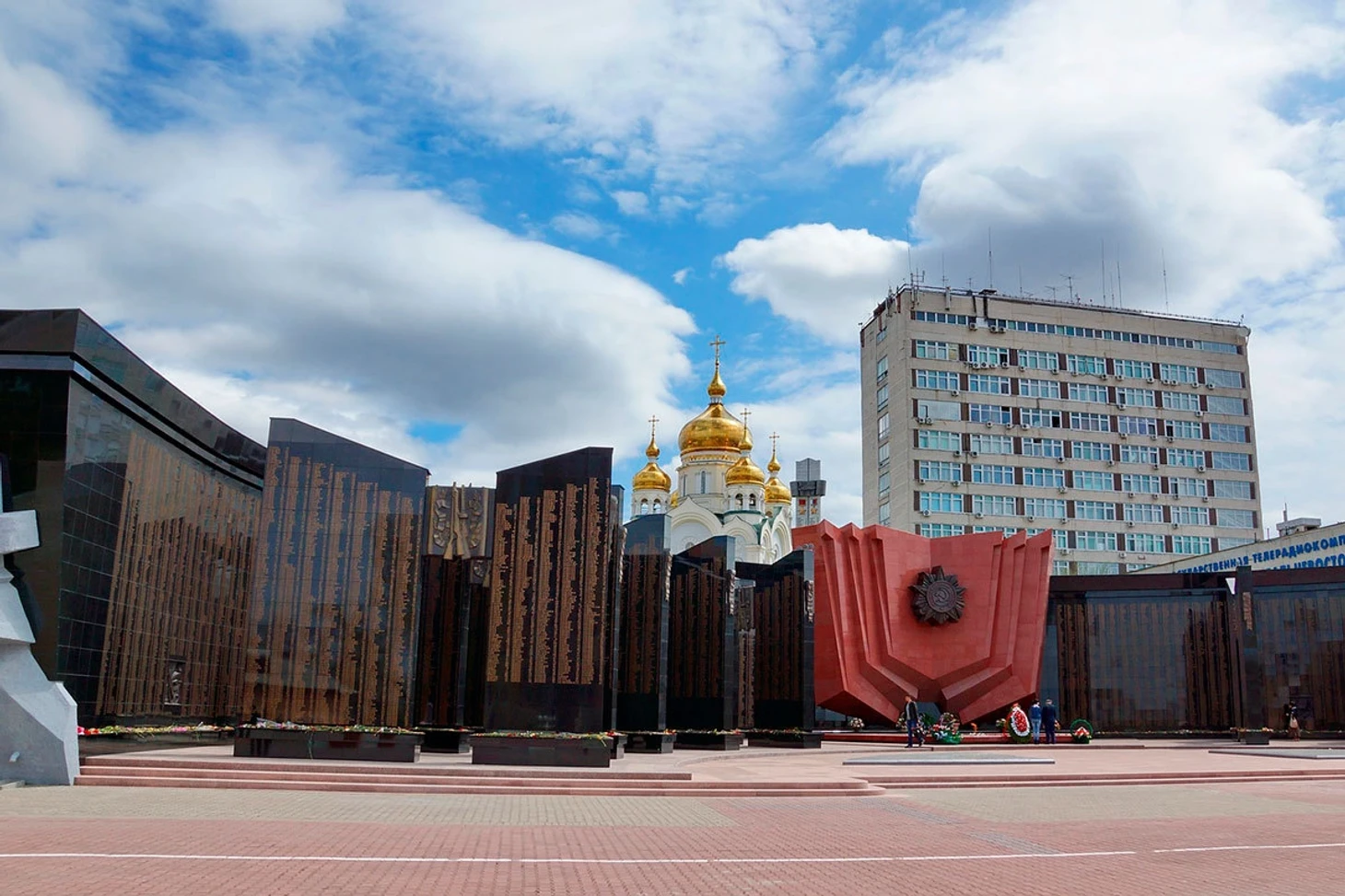 Стене монумента выбиты имена 19 тысяч солдат и офицеров хабаровчан, которые погибли в годы Великой Отечественной войны.