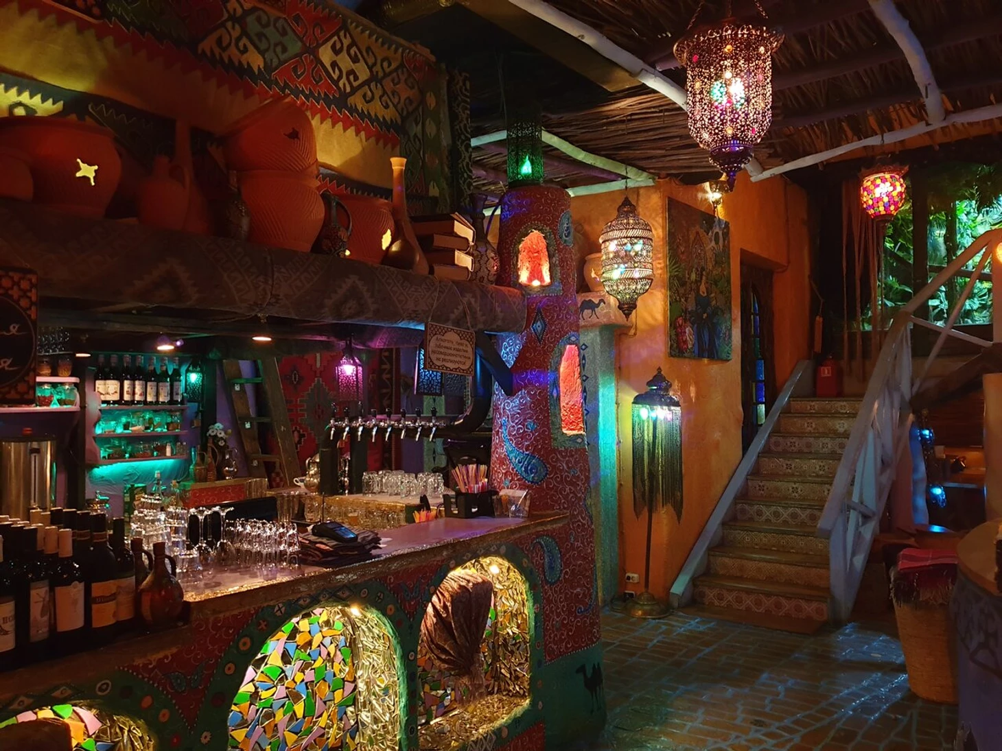 Официанты в кафе носят яркие костюмы и развлекают гостей. В меню есть блюда кавказской, турецкой и узбекской кухни Особое внимание стоит уделить чаю и сладостям. Средний чек 1000 рублей.