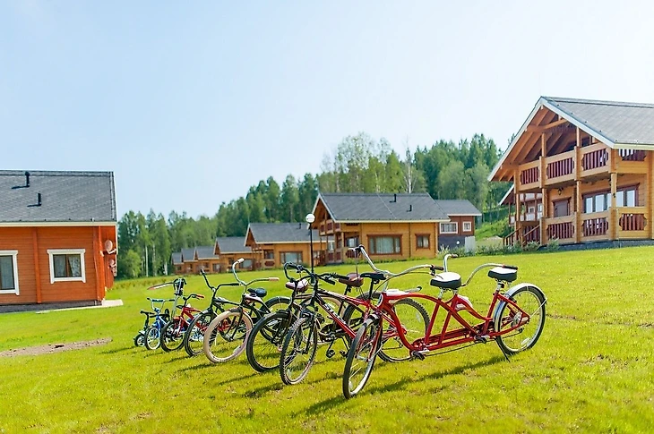 Для проживания доступны коттеджи, возведенные из натурального дерева. Они находятся в сосновом бору вдалеке от шумного города. У каждого дома комплекса расположена собственная мангальная площадка. На территории центра работает прокат. Можно арендовать спортивный инвентарь, принадлежности для рыбной ловли, велосипеды, лыжи.