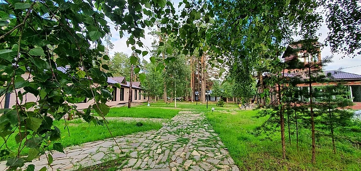Лесопарковая территория базы занимает 6 гектар в густом лесу. В сезон можно отправиться на сбор ягод и грибов, прогулки на свежем воздухе доступны в любое время. На территории центра работает кафе, баня с бассейном, спортивные и детские площадки, веревочный парк. Особая гордость базы отдыха — собственный конный клуб.