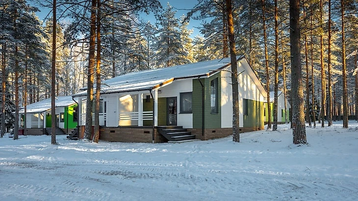 Все коттеджи базы отдыха построены в современном скандинавском стиле. В них есть все для комфортного проживания. Снять коттедж можно на сутки или на более длительный срок, включая несколько месяцев.
