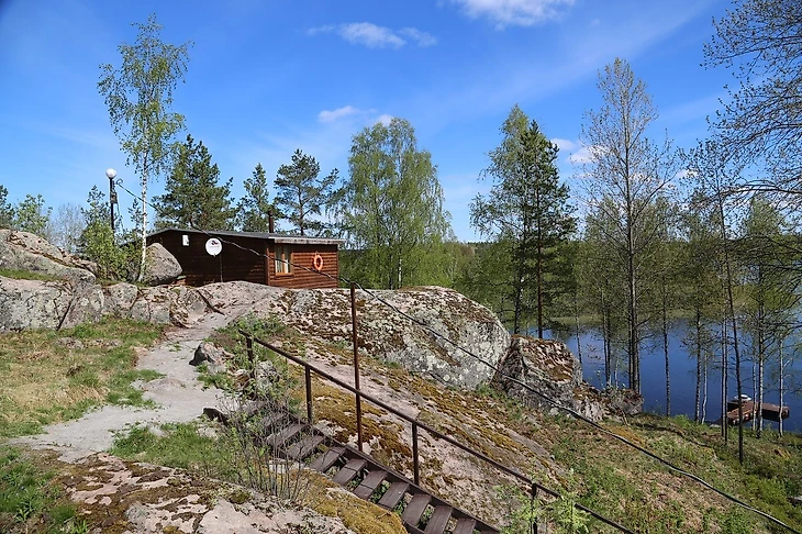 База отдыха «Скала» расположилась у красивого, но небольшого озера Любимовское в Выборгском районе Ленобласти. Рядом находится поселок Козлово.