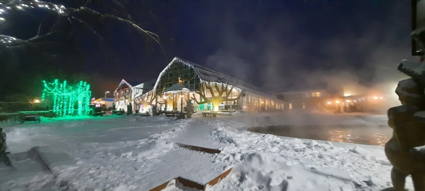 Гости центра могут посетить термальный бассейн с полезной водой, при этом не останавливаться на ночлег. В стоимость единого билета посещения входит проход в бассейн, баню и пользование шезлонгами в зоне отдыха. Также работает соляная, ледяная комнаты и инфракрасная сауна. За отдельную плату можно сделать массаж и воспользоваться SPA-процедурами. На территории центра работает бар.