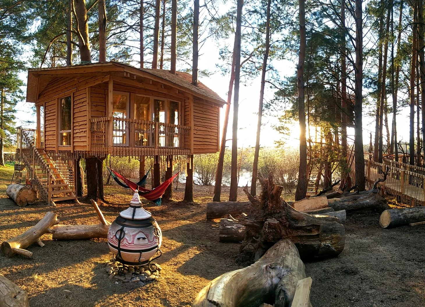 Посетители центра могут остановиться на ночь в гостевых домах необычной форме — домики на деревьях. Номера в домах стилизованы под русские сказки и былины. На базе отдыха можно жить в Кащеевой хате, Кабинете Творца, домике на дереве, Норе и других тематических номерах. На территории центра есть мастерская, в которой проводят мастер-классы, арт-терапию. Есть бани.
