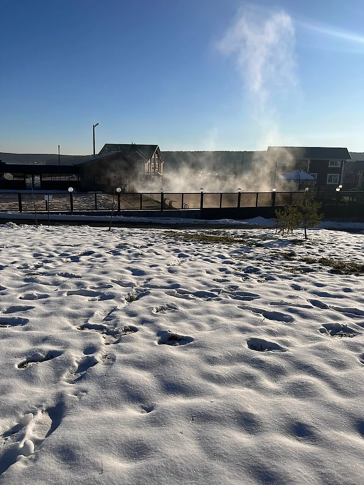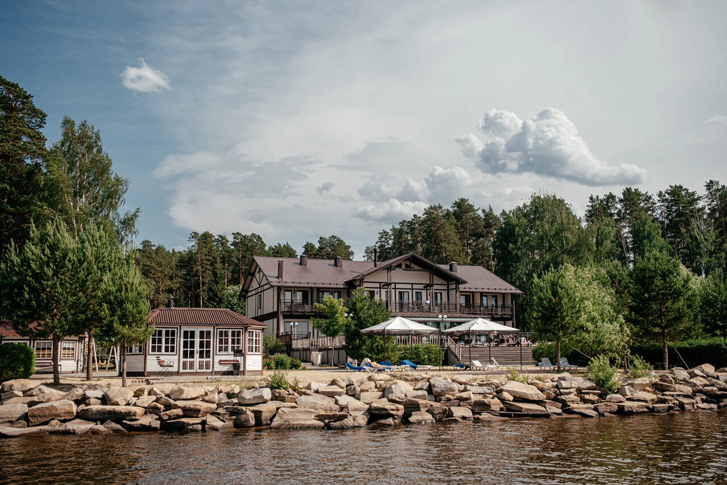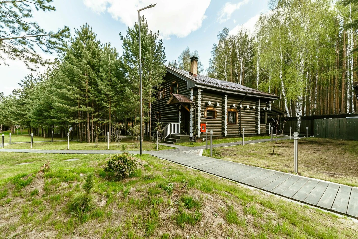 Для проживания отдыхающих построены коттеджи из натуральных материалов в скандинавском стиле. Рядом с коттеджами протекает небольшая река. Здесь приятно гулять, наслаждаясь свежим воздухом. Также можно отправиться на рыбалку на реку. Для проведения торжественных мероприятий предусмотрен банкетный зал.