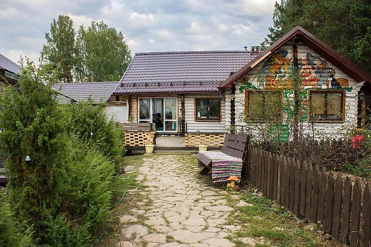 Гостевой дом площадью почти 200 квадратных метров выполнен из натурального дерева в стиле кантри. В нем есть все для комфортного отдыха — современная бытовая техника, просторные комнаты, много спальных мест, игровая приставка. База отдыха находится в деревне Флюс у Волчихинского водохранилища.